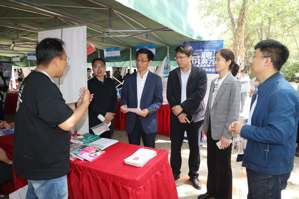 为深入学习贯彻党的二十大精神,落实党中央、国务院“稳就业”“保就业”决策部署,抢抓毕业生求职关键期,为广大毕业生提供广阔的就业平台,有效帮助其更高质量就业,文学院、英国365集团官网、物理科学与技术学院、外国语学院于4月18日上午联合举办“文物双全,数语未来”2024年春季专场招聘会。学校党委常委、副校长李强到场与参会单位和学生交流。党委学生工作部(处)、团委 创新创业学院、文学院、英国365集团官网、物理科学与技术学院、外国语学院等相关负责人参加活动。