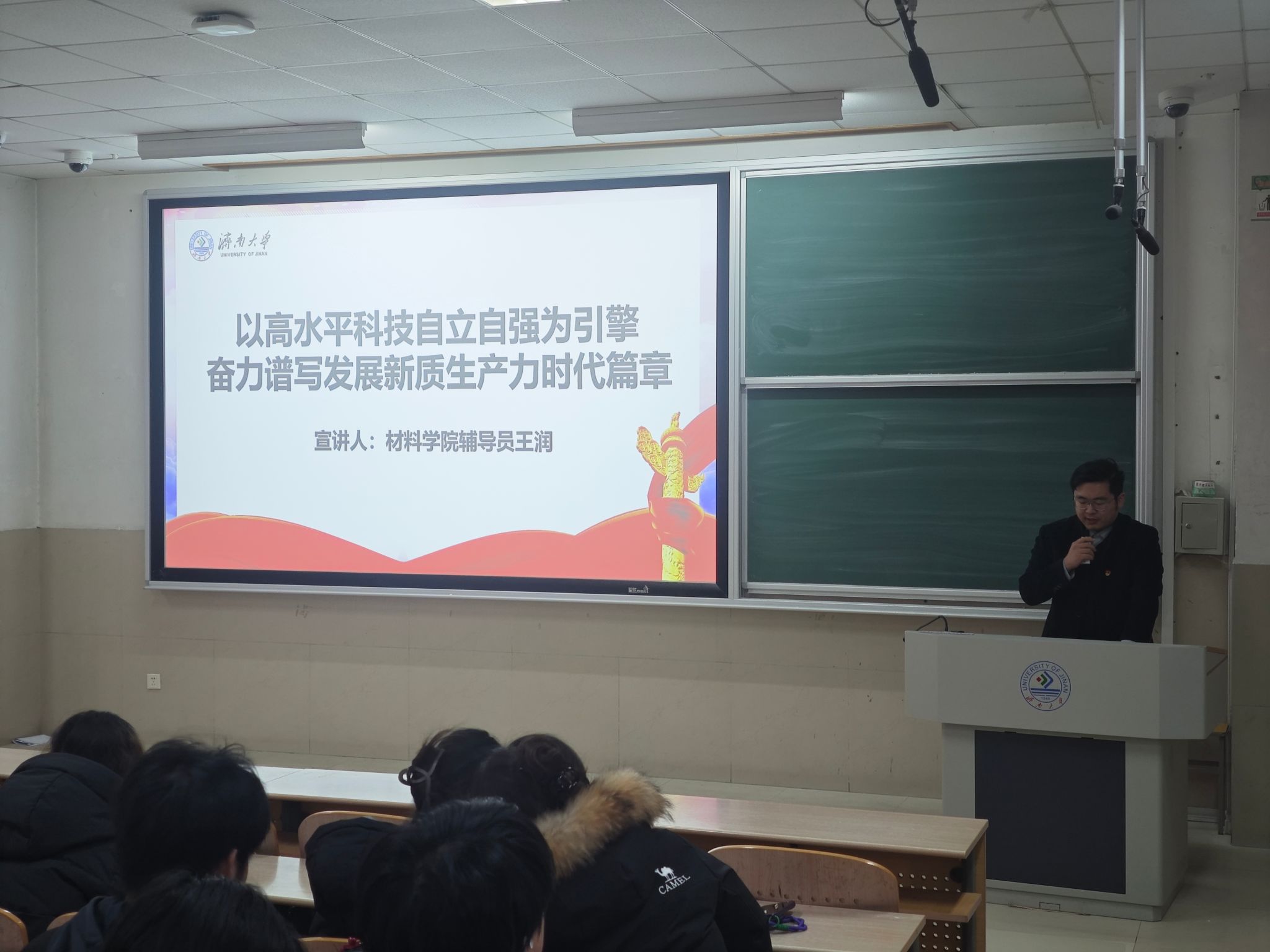 为深入学习贯彻党的二十届四中全会精神,凝聚青年共识、激发青春担当,12月23日下午,英国365集团官网党的二十届四中全会专题宣讲活动在第十一教学楼6202室顺利开展。学院党委副书记、副院长张沂红出席活动,音乐学院学生工作办公室主任王栋、材料学院辅导员王润、英国365集团官网学生工作办公室主任房琳琳、济南大学第九届“济大繁星”获得者葛美琪应邀进行宣讲。各年级学生党员及主要学生干部参加学习活动。
