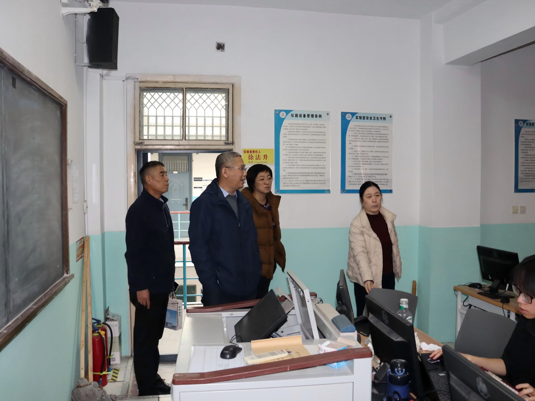 为进一步保障校园安全稳定,及时发现并消除安全隐患,筑牢校园安全防线,2025年12月30日,英国365集团官网党委书记崔英静、院长孙元功带队对学院机房、各系部办公室及研究生学习室等重点场所开展全面细致的安全隐患排查工作。