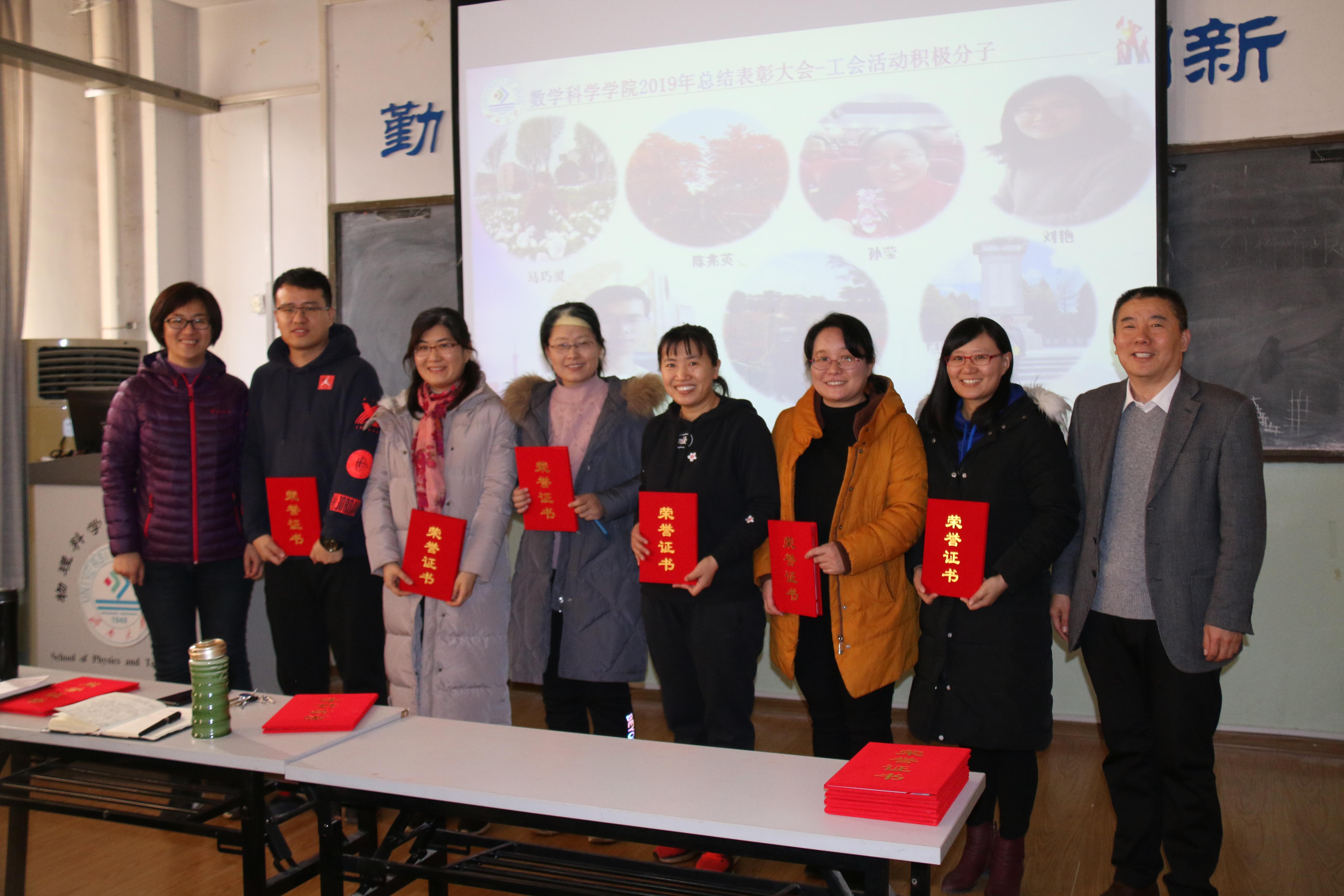 孙元功荣获学院学科建设突出贡献奖,孟德洋、赵华磊荣获学生科创突破奖,张苏梅、孙书荣、李可峰、陈兆英、刘春燕、张超、孙莹、韩振来、张永祥、郑艳玲、冯琳荣获 “优秀教育教学工作者”称号,孙元功、张永祥、陈观伟、刘红军、孙书荣、邵长国、赵以阁、杨健、宗雯雯、张志强、束彦军荣获“优秀科研工作者”称号,孙莹、赵华磊、赵以阁、孙钏峰荣获优秀班主任,吴立军、马巧灵、陈兆英、孙莹、刘艳、郝志峰、张颖荣获工会活动积极分子,复杂系统分析与控制研究所、数学与应用数学系、数学教育教研中心、教学管理办公室荣获“先进集体”称号。
