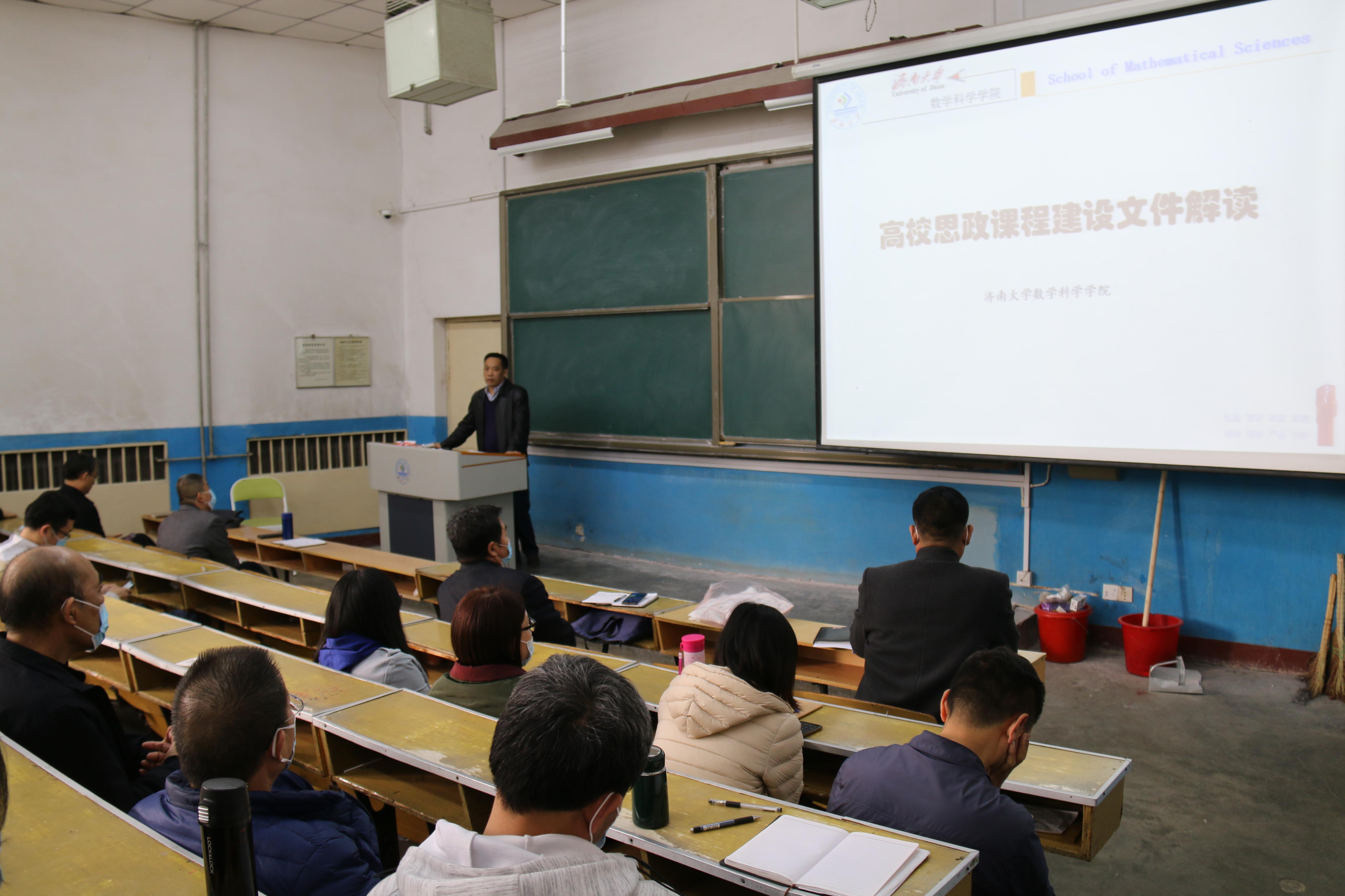 副院长王纪辉带领全体教职工一起学习了教育部《高等学校课程思政建设指导纲要》和学校《关于进一步推进本科教学课程思政建设工作的通知》。