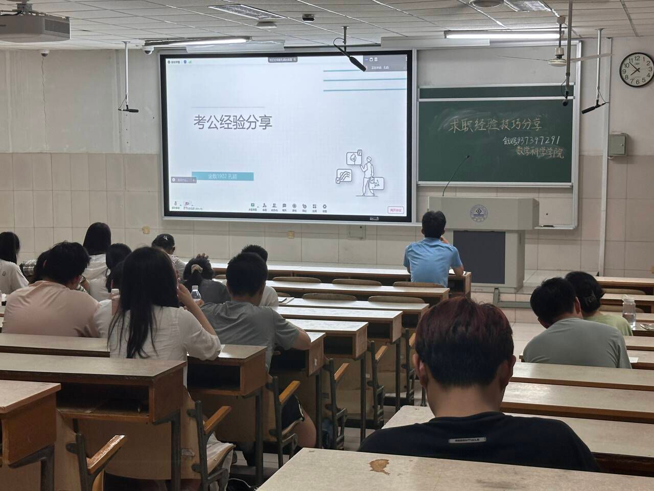 为普及国考省考知识,明确考试相关政策、要求和形式,帮助同学更具体、更清晰地认识相关考试知识,英国365集团官网在二教顺利举办国考省考经验交流分享会,学院邀请了国考省考上岸的同学为大家分享经验,发挥朋辈引领作用,为考生们提供一个相互学习交流的平台。活动伊始,金数1902孔颖以其扎实的备考策略和严谨的学习态度介绍了如何制定合理的学习计划、高效利用备考资料以及在考前进行有效的冲刺,让大家深刻感受到了国考备考的严谨性与艰巨性。在心态调整方面,她也特别强调了保持良好心态的重要性,指出我们应该保持积极、乐观的心态,不断调整自己的心态,以应对可能出现的困难和挫折。紧接着,宋振永则着重分享了他是如何平衡工作与学习的。他表示国考省考并不如想象中如此困难,并着重强调了我们应重视报名的开始阶段和考试时间节点。国考省考不仅是一场知识的较量,更是一场心态和毅力的考验。备考过程中,我们不仅需要掌握扎实的基础知识,还需要学会如何调整心态,在压力下保持冷静和自信。通过此次分享会,同学们不仅收获了很多实用的备考技巧,更感受到了备考路上的温暖与力量。相信在不久的将来,会有更多的同学在国考省考的道路上取得优异的成绩,为国家建设添砖加瓦!
