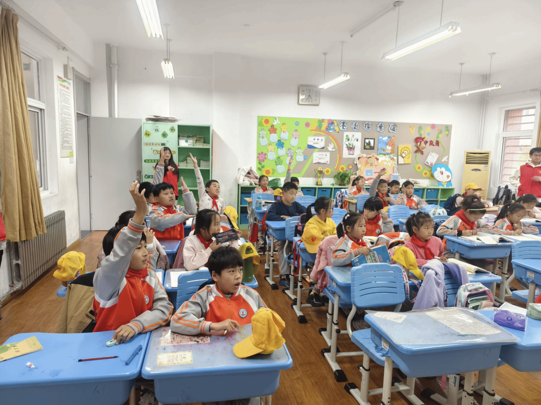 活动伊始,志愿者用经典而不乏趣味的小故事吸引同学们的注意,大家纷纷展开思考,一堂趣味数学的课程悄然拉开帷幕。随后,志愿者采用生动的语言继续引导着同学们深入探索,当讲解视频的进度条告结,“七桥问题”率先登场,极具数学特色的题目顿时引发了教室内的新一波讨论热潮。同学们纷纷举手发言,上台讲出了自己的解法。随着第一个问题被解答完毕,志愿者借着余浪带领同学们走进了n维数学世界。随处可见的点、线、面,在志愿者手里成了领路标,使同学们逐步理解了空间维度和抽象概念。紧接着,志愿者通过一个耳熟能详的寓言故事,引入了乘方的概念与意义,通过折纸等实践活动,不仅提升了同学们的动手能力,还让知识的概念有了具象化,更加深了同学们对乘方的理解。同时,志愿者用独具数学魅力的乘方运算,阐述了“即使是2%的进步,只要锲而不舍地努力,终会收获千倍的成果”这一哲理,带给了大家不一样的心灵指导 。