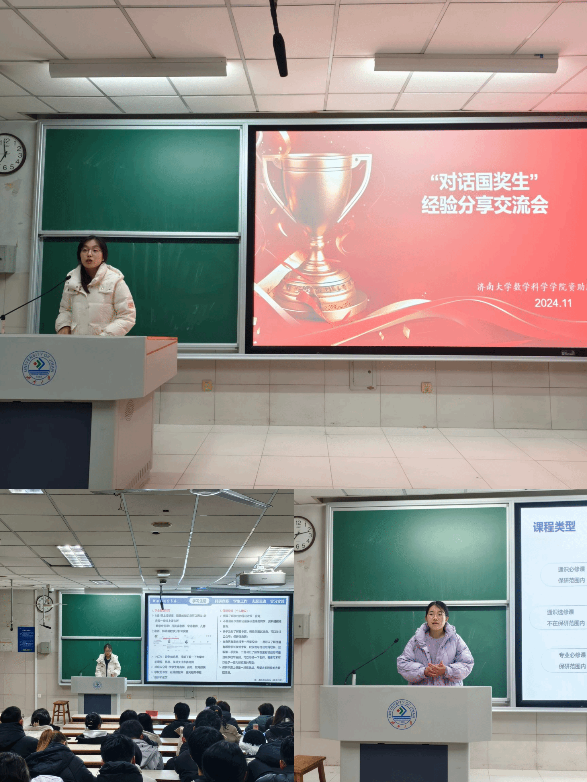 宣讲会伊始,刘佳怡以自身经历为例,分别从学习生活、科研竞赛、学生工作、志愿活动、实习实践五个方面来讲述自己在求学路上的丰富经验。她针对大学四年的不同阶段提出各种实用性建议,同时分享给同学们许多宝贵资源,向在场所有同学阐明扎实专业知识、大胆挑战难题的观点,激励同学们怀揣心中梦想,勇敢探索未来。随后,宋中华紧紧围绕主题,通过系统梳理课程体系,让同学们更加清晰地明确大学课程安排。接着,她细致地讲解保研要求,帮助大家树立学习目标,鼓励同学们全面发展,不断提高个人能力,提升个人素养。宣讲的最后,宋中华介绍了个人规划的重要性,并就如何合理规划大学生涯这一问题总结出优秀方法。本次活动结束后,同学纷纷表示要以学姐为榜样,不断提高自身能力。