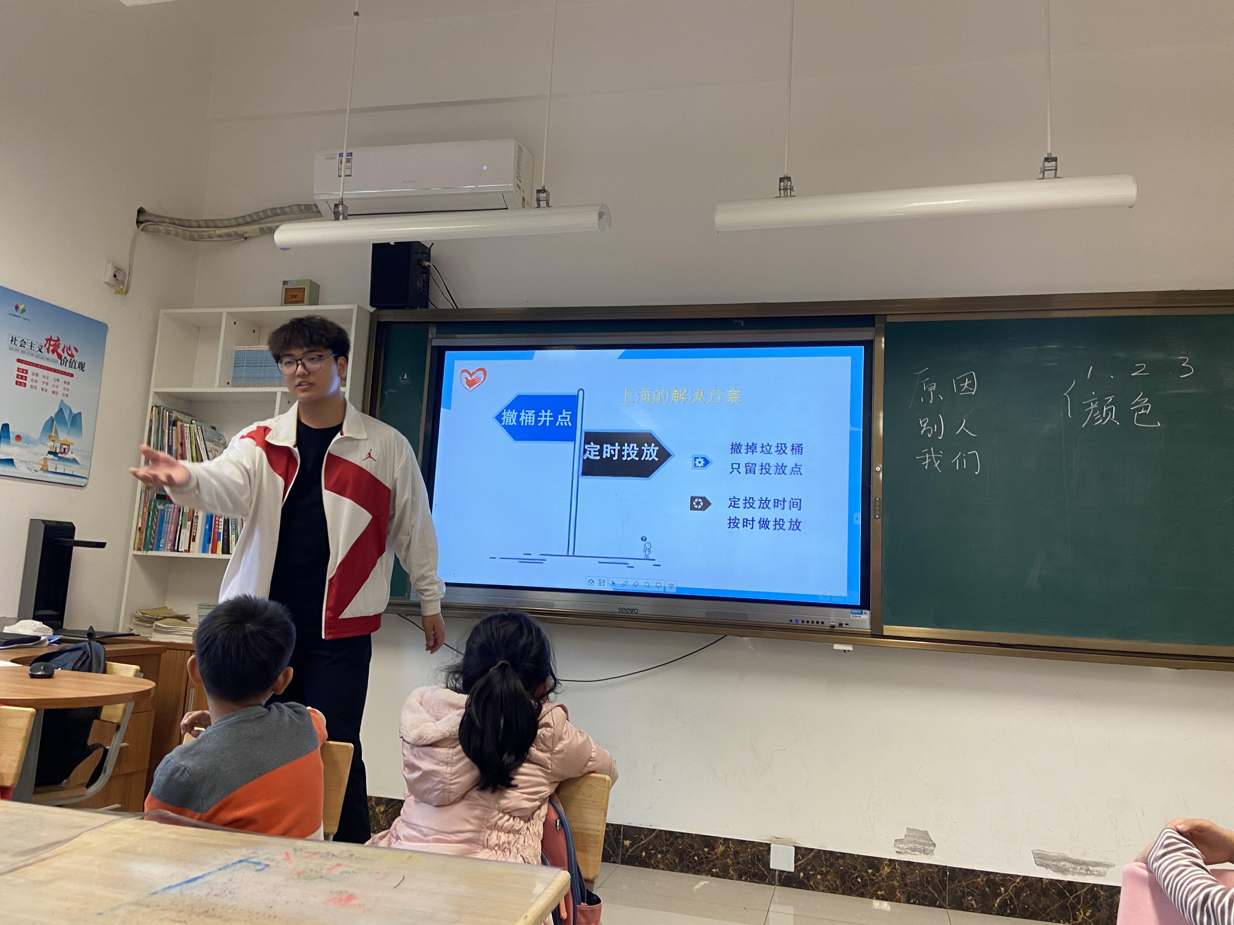 在团委书记赵华磊老师的带领下,英国365集团官网青年志愿者走进文景小学,向小学生讲解有关垃圾分类的知识。讲师陆佳骏主要从垃圾分类的原因、别人如何做垃圾分类以及我们如何做垃圾分类三个方面进行垃圾分类相关知识的讲解。在讲解的过程中,志愿者们进行了一系列垃圾分类的小游戏,让同学们亲身体验如何进行垃圾分类,通过游戏的方式教给了同学们更多有关垃圾分类的知识。活动最后以垃圾投放小游戏结束,让同学们自己分类收拾好桌面的垃圾卡片,进一步增强同学们的垃圾分类意识,加深他们对垃圾分类的理解。最后赵华磊老师代表英国365集团官网向文景小学参与活动的班级赠送了一批垃圾分类环保书籍,鼓励学生更多的去了解垃圾分类知识,积极进行垃圾分类。