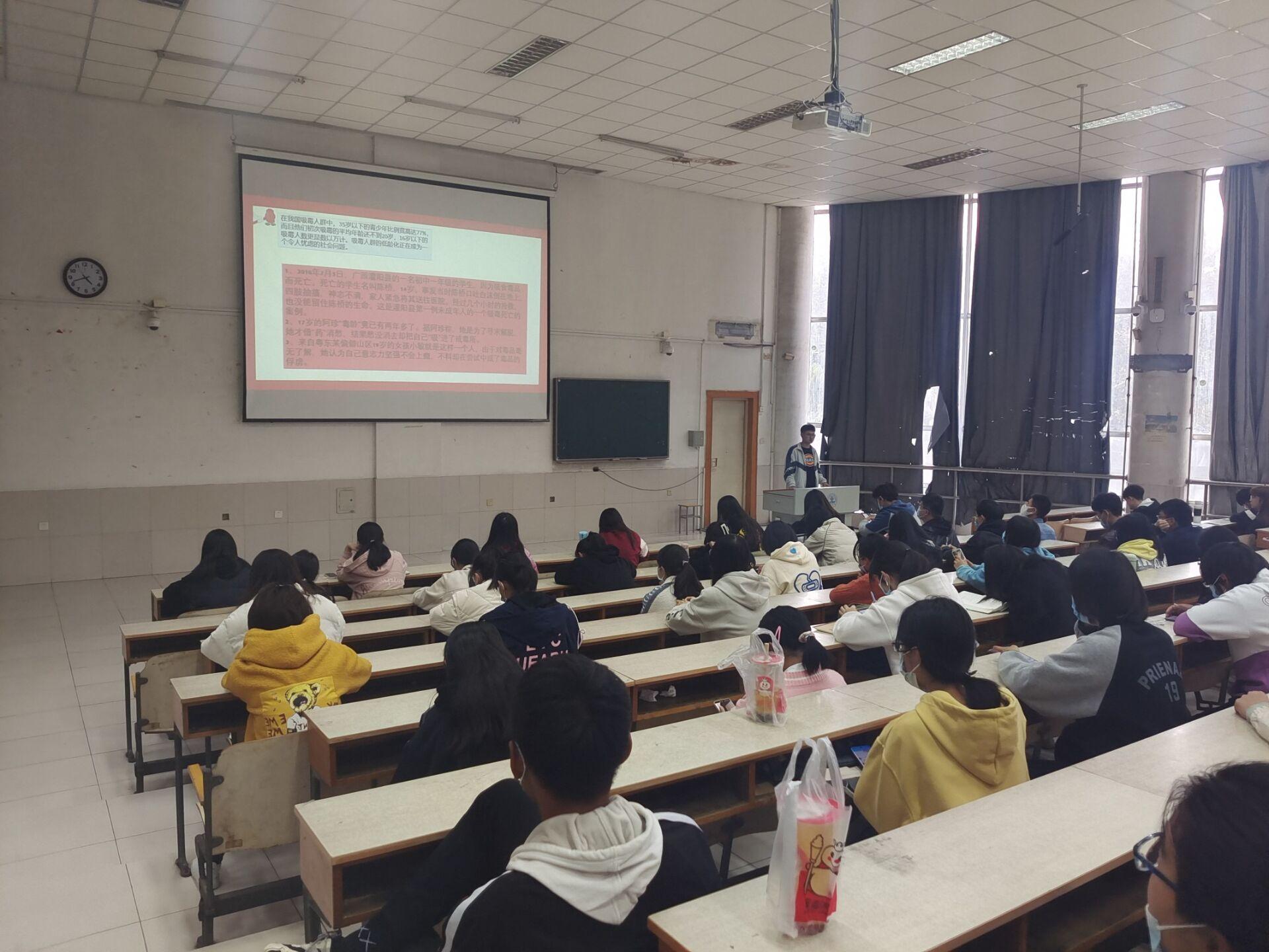 为贯彻落实党中央有关毒品预防教育的通知,进一步宣传毒品危害,增强学生的禁毒、防毒意识,形成“珍爱生命,远离毒品”的理念,打造平安校园,10月19日下午5点,英国365集团官网在2教201教室举办远离毒品宣讲会,全体学生干部参加此次活动。