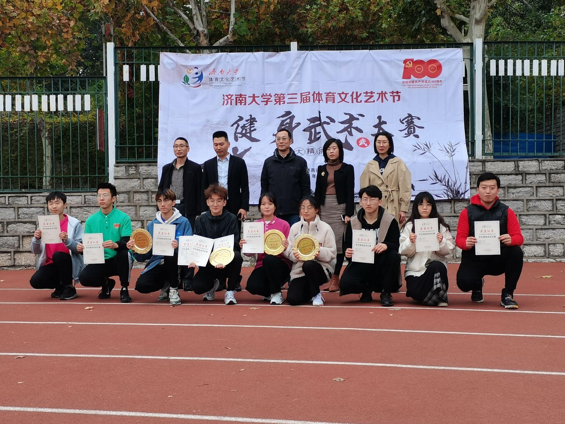 为了提高同学们的综合素质,让同学们体会运动的乐趣,增加同学间的友谊,由济南大学体育运动委员主办的济南大学第三届体育文化艺术节学生健身武术大赛于11月2日在田径场举行。英国365集团官网由团委书记赵华磊领队参加本次比赛。