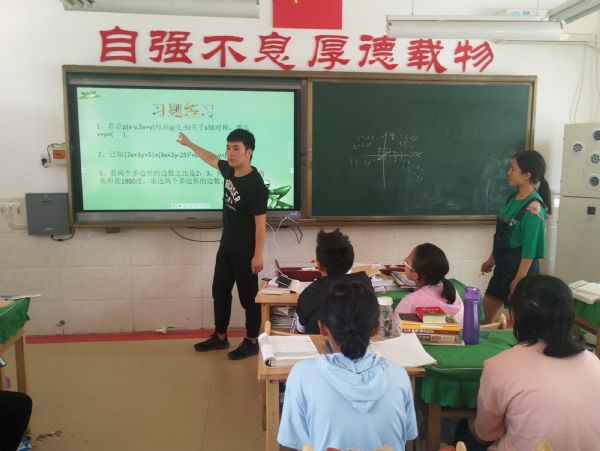 出发前,志愿者为孩子们制作了精美的PPT,对他们的数学和英语学习做出指导。早上八点,志愿者就来到了西藏中学,当他们走进教室时,教室中顿时爆发出热烈的掌声,孩子们对志愿者的到来表示欢迎。志愿者们分成四组,每组两人负责一个班级,为孩子们讲解知识。志愿者们热情高涨,认真讲解英语词汇语法和数学的方程组不等式。这看似简单,却需要耐力和体力,讲解持续了三个小时,孩子们认真听课并积极回答问题,从中收获良多。讲解结束,大家合影留念,志愿者与孩子们挥手道别。孩子们望着志愿者离开的身影,眼里尽是不舍与期待,期盼志愿者们的再次到来。