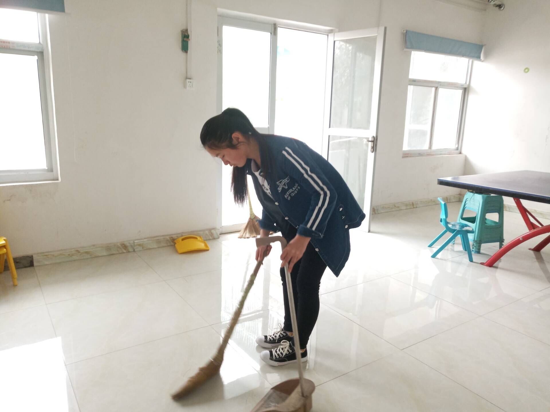 12点50分,志愿者们在校医院门口集合完毕后,一起乘坐公交车前往天翼康复中心。到达目的地后,老师便给志愿者们发布了任务,随后志愿者们商量并合理分配任务,很快就开始了工作。按照分配,志愿者们彻底且迅速地清扫了宿舍、个训室和感官游戏室,并且将感官游戏室内的活动道具擦拭摆放整齐,打扫结束后,老师对志愿者表示了感谢与赞赏。此次活动不仅为后来上课的老师和孩子们创造了良好干净的环境,而且使孩子们感受到了志愿者们的善良与用心。