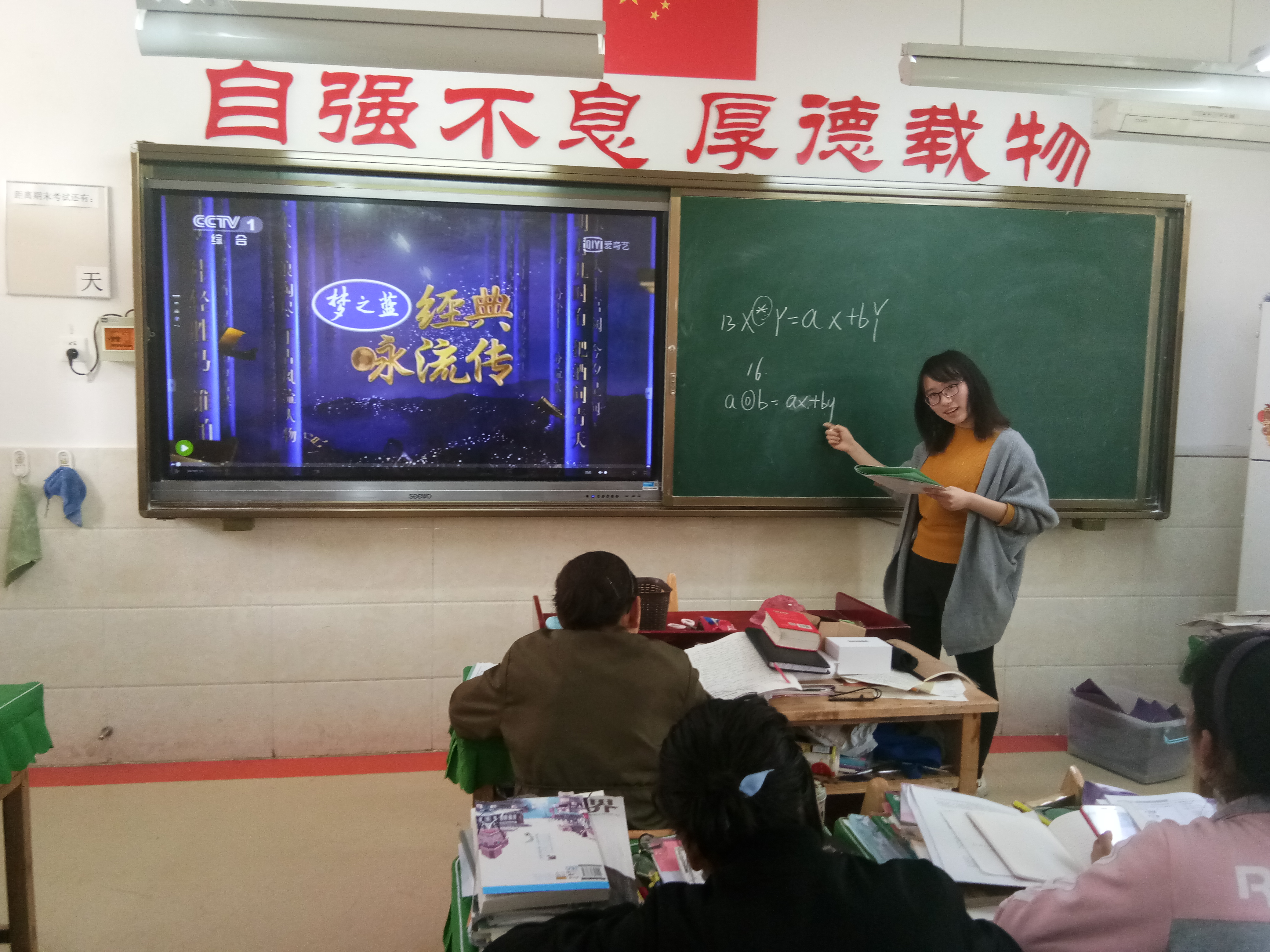志愿者们给大家介绍了一部正能量的综艺节目,名为《经典咏流传》,这是一部由数位明星将古代诗词用歌曲形式演绎的节目,以轻松愉悦的方式向大家展示中国古代文化。同学们观看得津津有味,不时地跟着曲调哼唱,志愿者将诗词抄写在黑板上,方便同学们理解记忆。同学们说,此节目很有意义,邀请的明星都是当下具有高人气的,吸引了大家的眼球,也在不知不觉中学会了几首诗歌。接着,志愿者充当小老师,给同学们讲解难题,并提出新问题,同学们积极讨论,争相回答。然后,志愿者小老师们带领大家进行户外活动,跳绳,打羽毛球,玩小游戏,校园中充斥着同学们的欢笑声,我们的活动也变得充实且满足。志愿活动结束,志愿者与同学们告别。