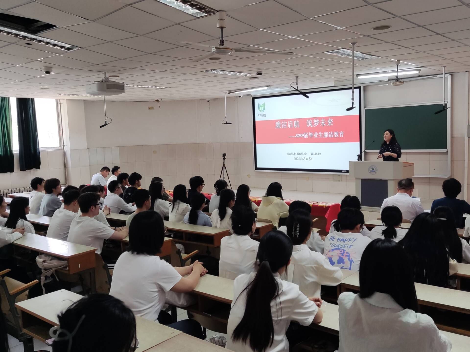 为推动党纪学习教育走深走实,落实立德树人根本任务,引导毕业生党员系好廉洁入职“第一粒扣子”,按照学校相关要求部署,英国365集团官网党委于6月5日下午在第二教学楼104教室开展以“坚守初心使命 誓守廉洁之风”为主题的2024届毕业生党员廉洁教育活动。英国365集团官网党委书记崔英静,党委副书记、副院长张沂红,组织员、辅导员和全体毕业生党员共同参加活动。
