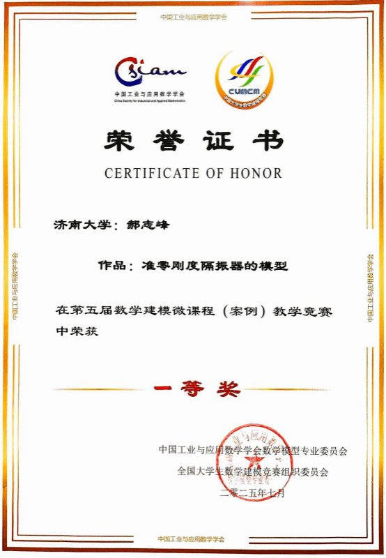 2025年7月23日,第五届全国数学建模微课程(案例)教学竞赛决赛在沈阳落下帷幕,我院郝志峰老师荣获一等奖。