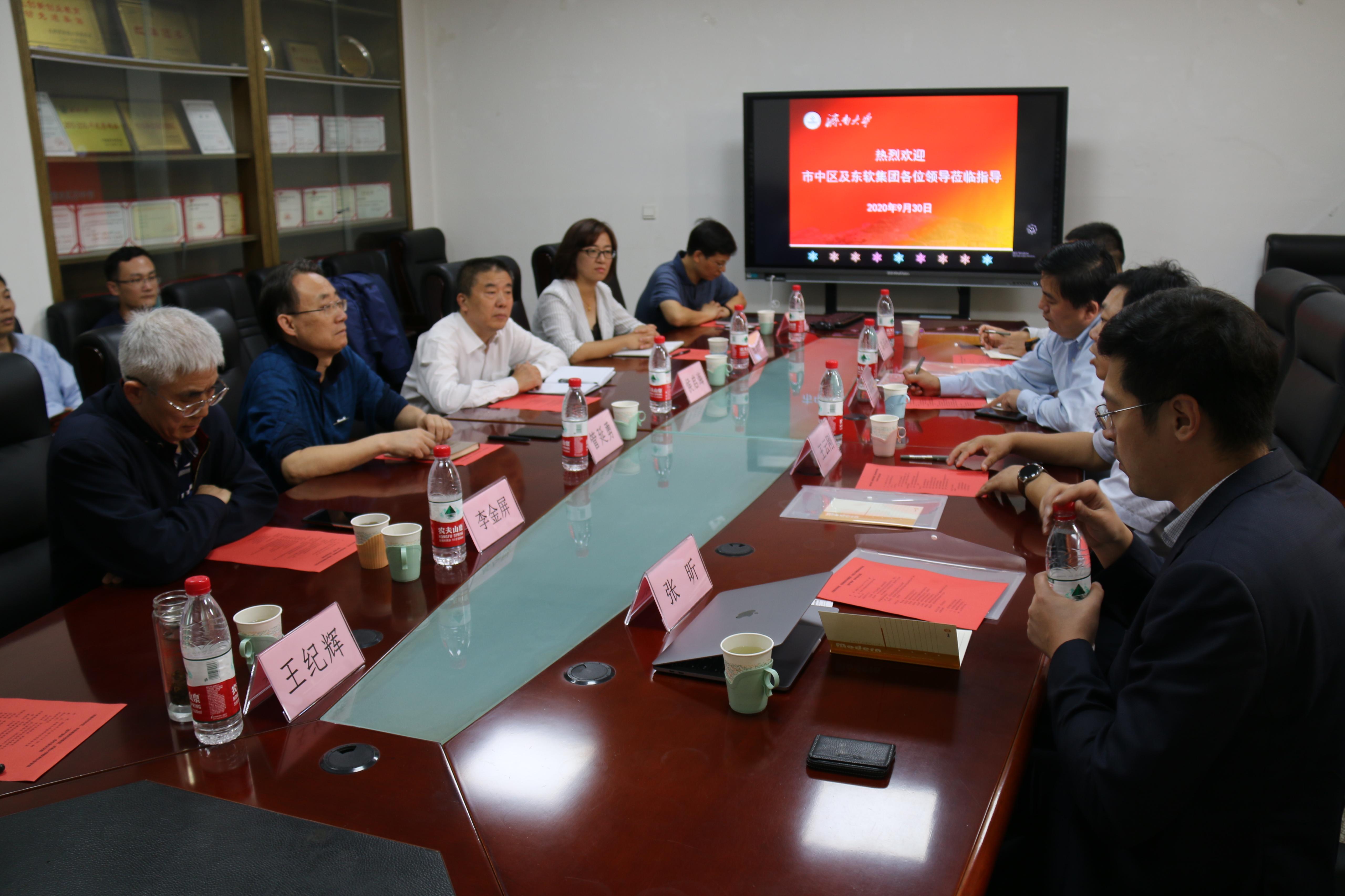 9月30日下午,济南市市中区委常委、统战部长王云刚,市中区经济和信息化局党组书记、局长、区大数据业(软件信息业)服务中心主任耿汝年,东软教育科技集团华中区总经理张昕、东软教育科技集团职业等级评价机构事业部(筹)总经理秦绍州一行来我院洽谈政产学研合作,学院党政领导班子成员、专家学者以及相关系部主任参加座谈会。