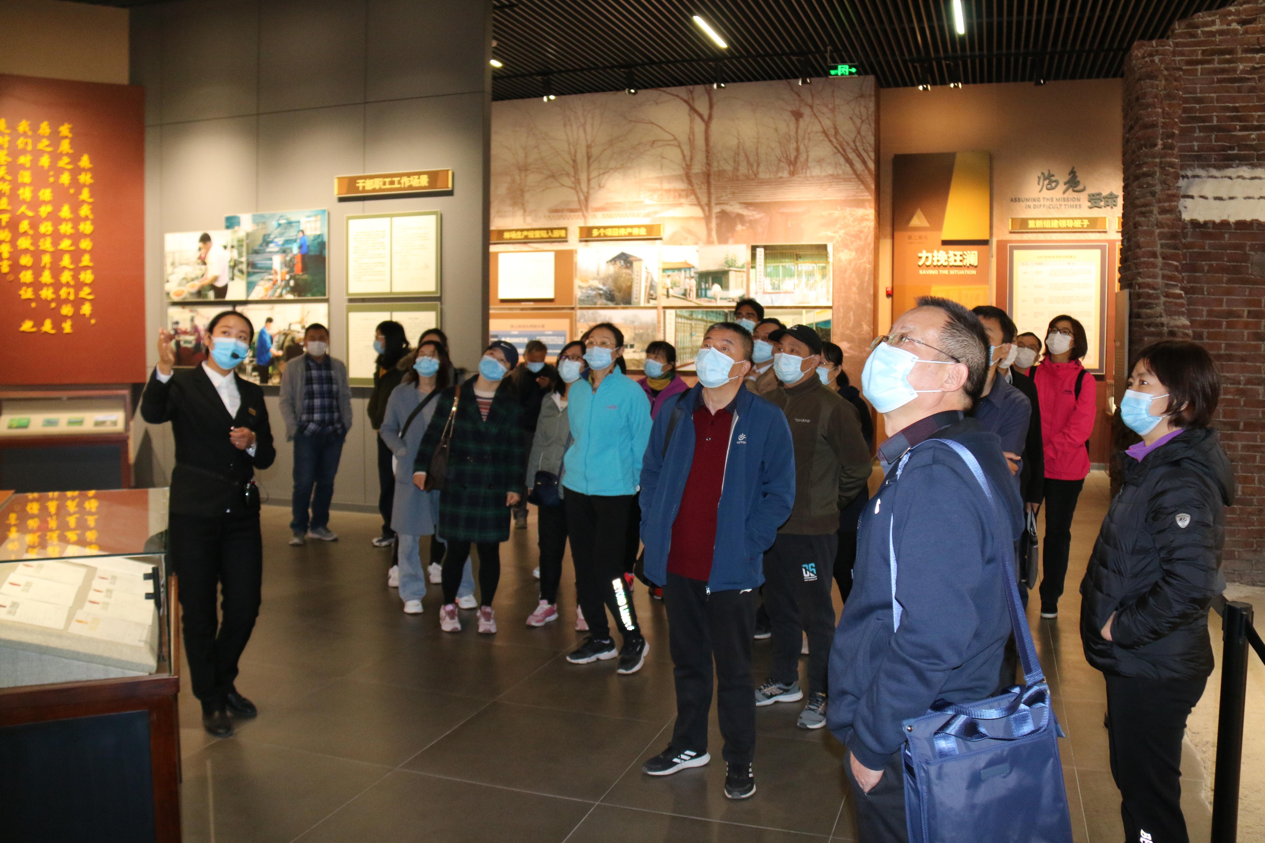 在原山艰苦创业纪念馆,跟随着讲解员的引领,大家依次参观了“艰辛探索,石缝扎根”、“困境重生,迎风成林”、“创业不惜,春风更劲”、“精神高地,山林长青”、“亲切关怀,情暖原山”五个展厅,通过观看实物、模型、视频资料等方式,详细了解了原山林场是如何在原林场党委书记孙建博的带领下,经过几代人的努力,一步步地把曾经的荒山秃岭建成4.4万亩、14万立方米的森林,森林覆盖率由建场时不足2%提高到94.4%的艰苦奋斗历程。一幅幅记录艰苦奋斗岁月的图片,一件件见证历史变迁的物件、一桩桩感人至深的奋斗故事,真实再现了老一辈原山人“爱原山无私奉献,建原山勇挑重担”的优良传统和新一代原山人“特别能吃苦、特别能战斗、特别能忍耐、特别能奉献”的原山精神。