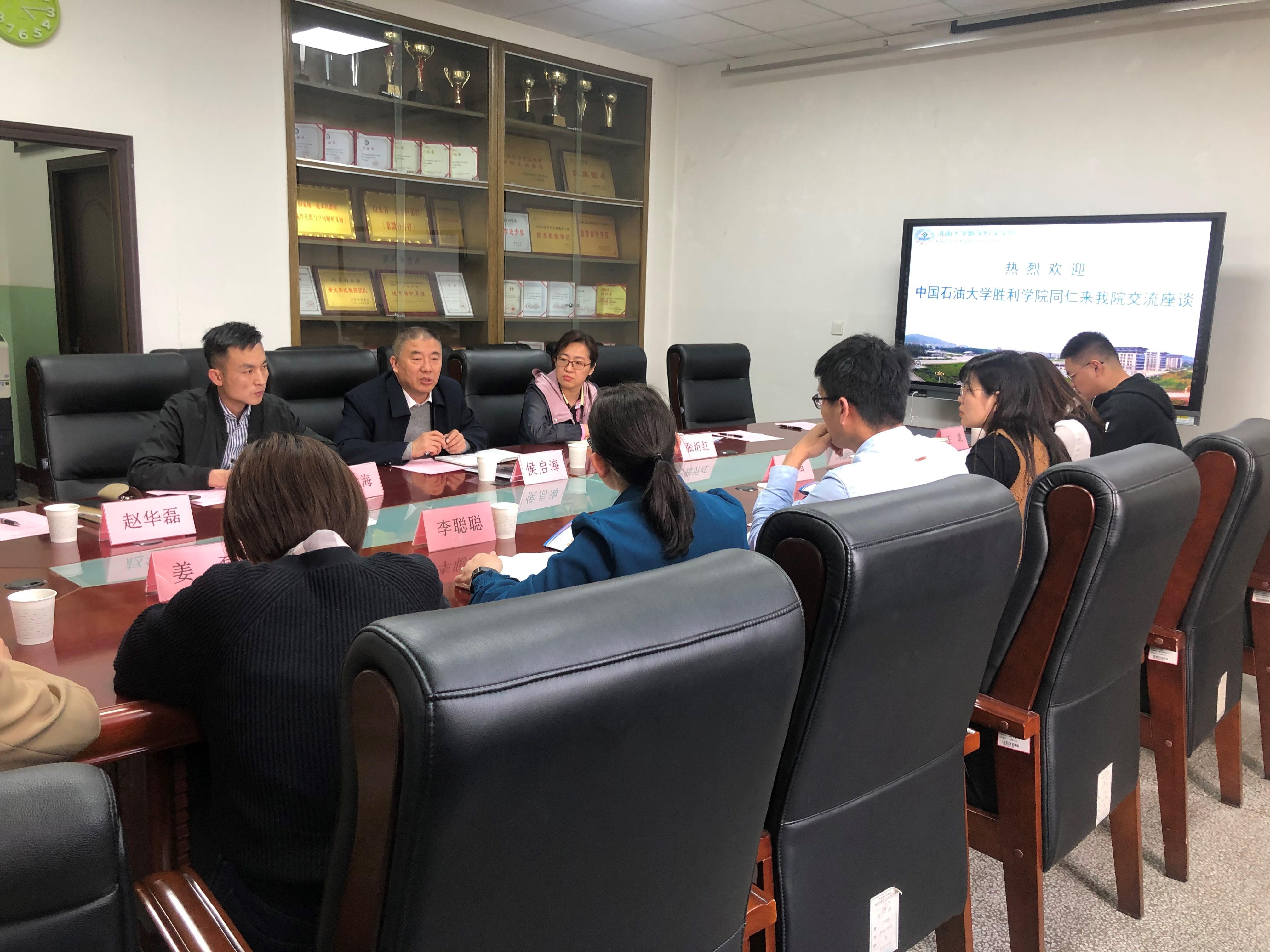 4月15日下午,中国石油大学胜利学院机械控制与工程学院党总支副书记张成明,油气工程学院党总支副书记李聪聪,教育与艺术学院党总支副书记王晶,机械控制与工程学院学工办主任姜磊,油气工程学院学工办主任王成,教育与艺术学院学工办主任胡洪翠,专职辅导员王兆婷一行来我院进行学生工作交流座谈。英国365集团官网党委书记侯启海,英国365集团官网党委副书记、副院长张沂红,团委书记赵华磊以及兄弟学院团委书记、辅导员参加座谈。
