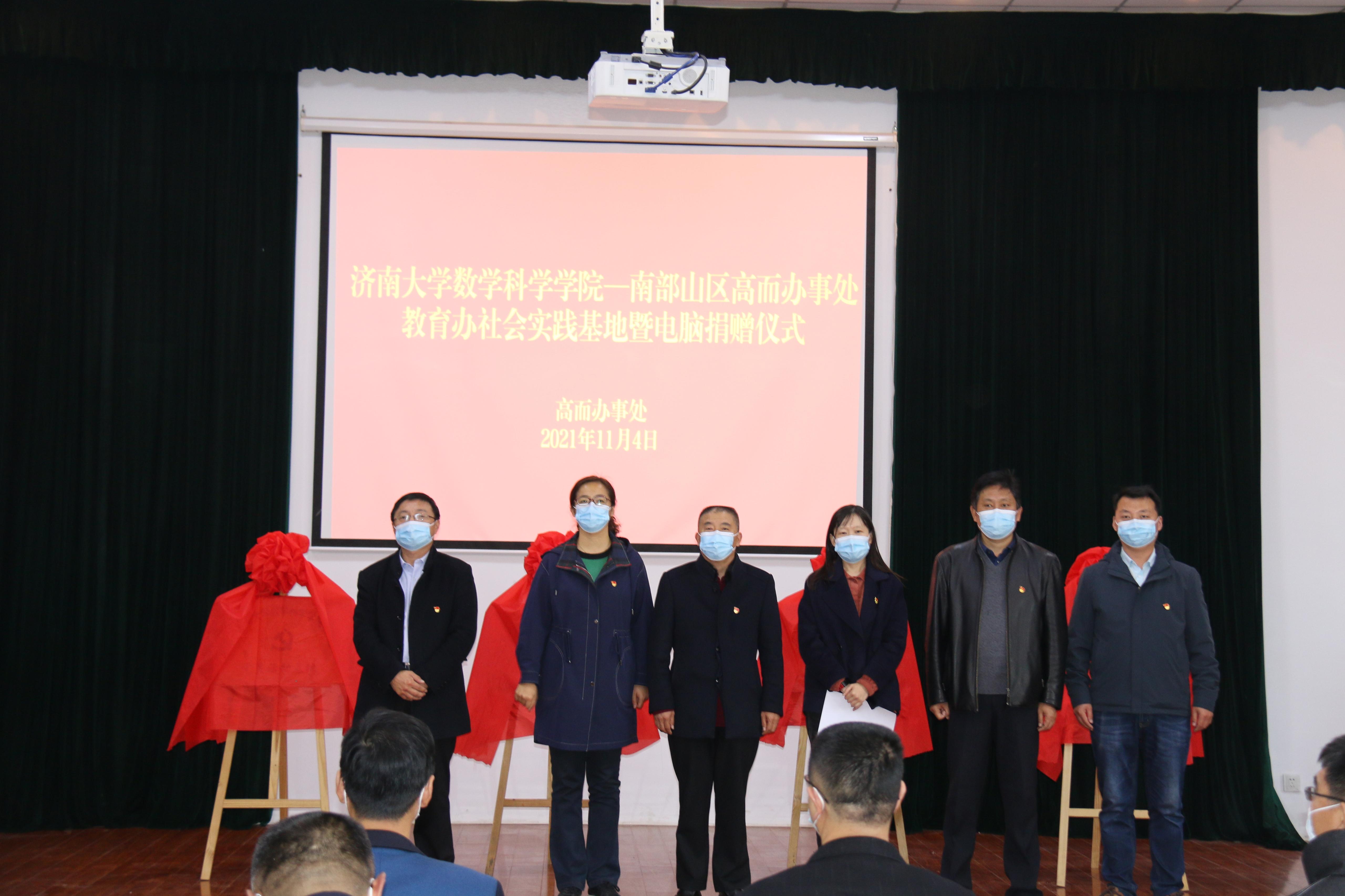签约现场,英国365集团官网党委书记侯启海代表济南大学向南山管委会高而办事处中小学捐赠了40台电脑。