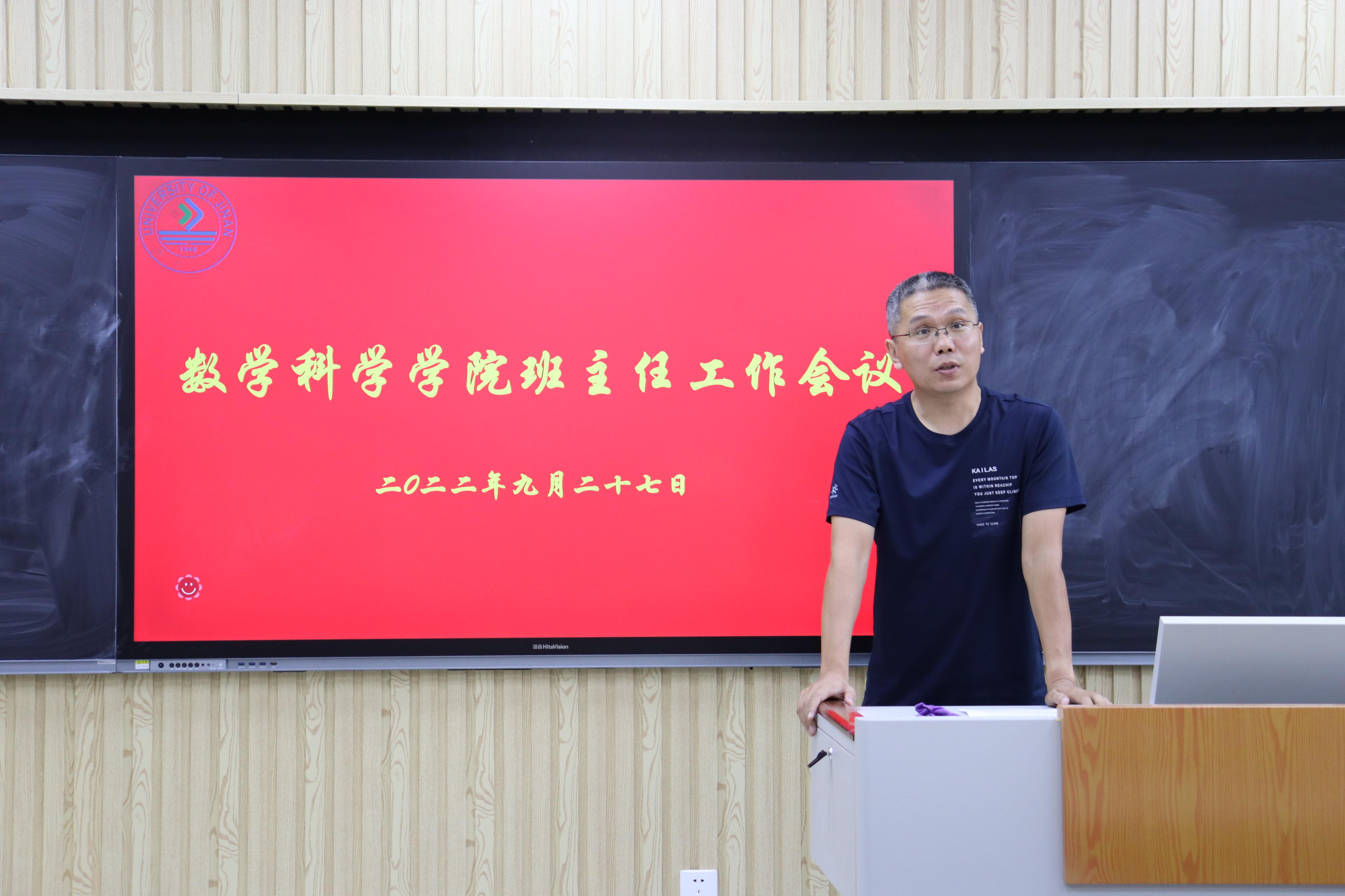 孙元功对班主任更快进入状态,更好开展工作提出了几点要求:一是坚持正确的育人导向,做好“铸魂育人”工作,加强对学生理想信念教育和家国情怀培养。二是聚焦主责主业,重点围绕学业引领学生,讲学习方法指导、讲专业发展,做好课程思政,指导好学生们的“主业”。三是付诸真心和爱心,与辅导员形成合力,对经济困难、心理危机的学生要给予更多的关心关注,成为学生们的良师益友,引领好、指导好学生的发展,让学生在济大数院学有所成。