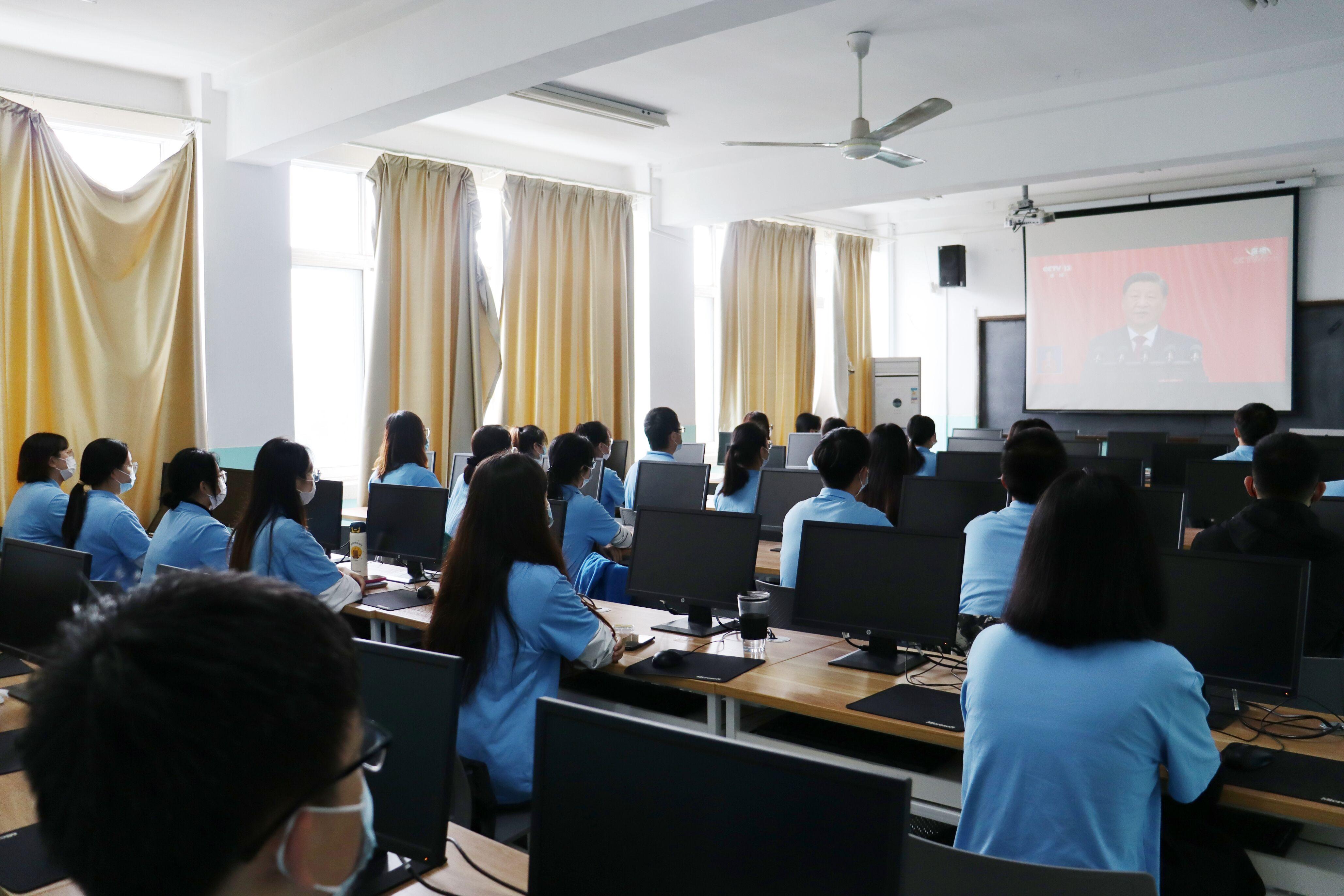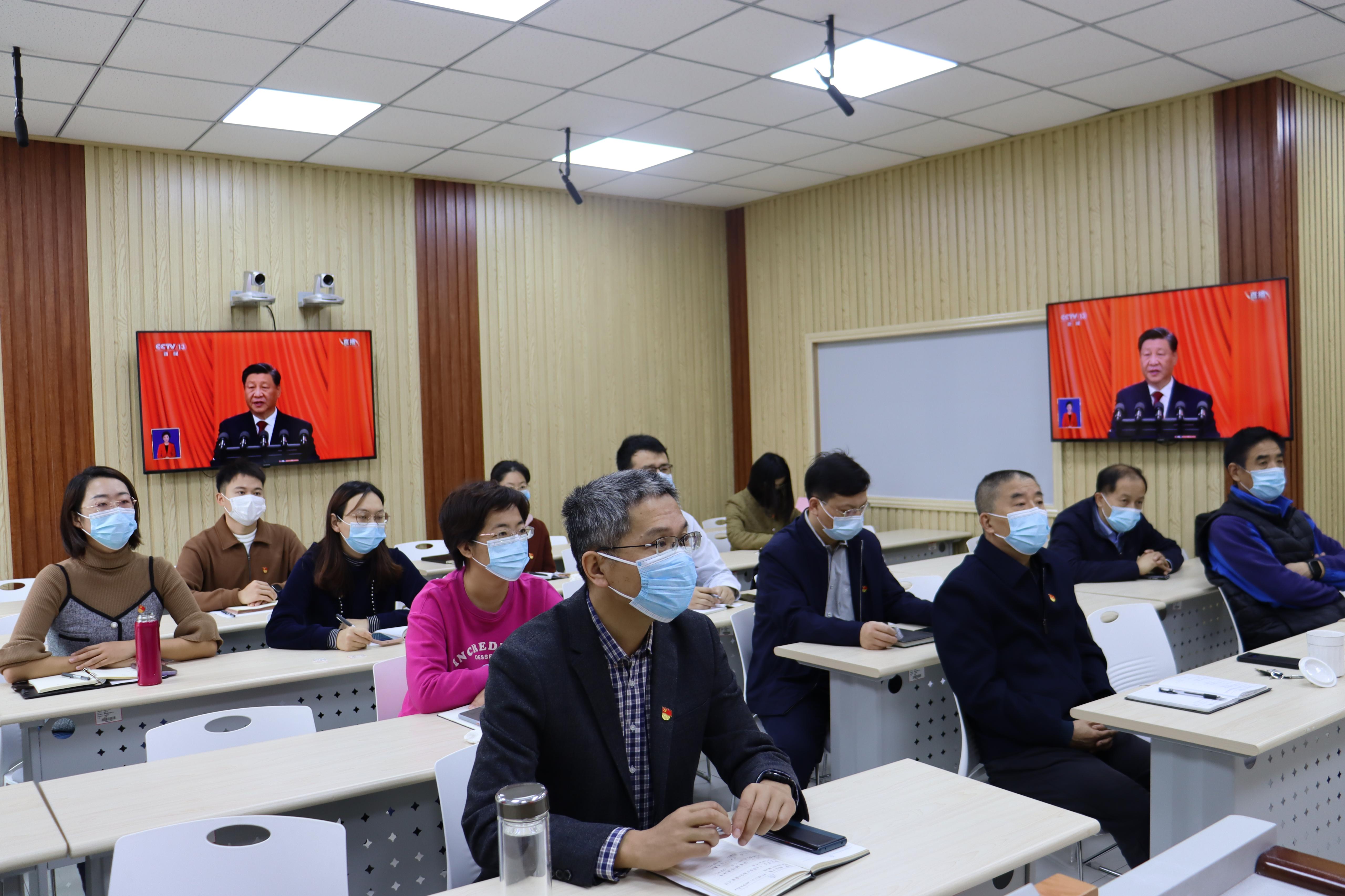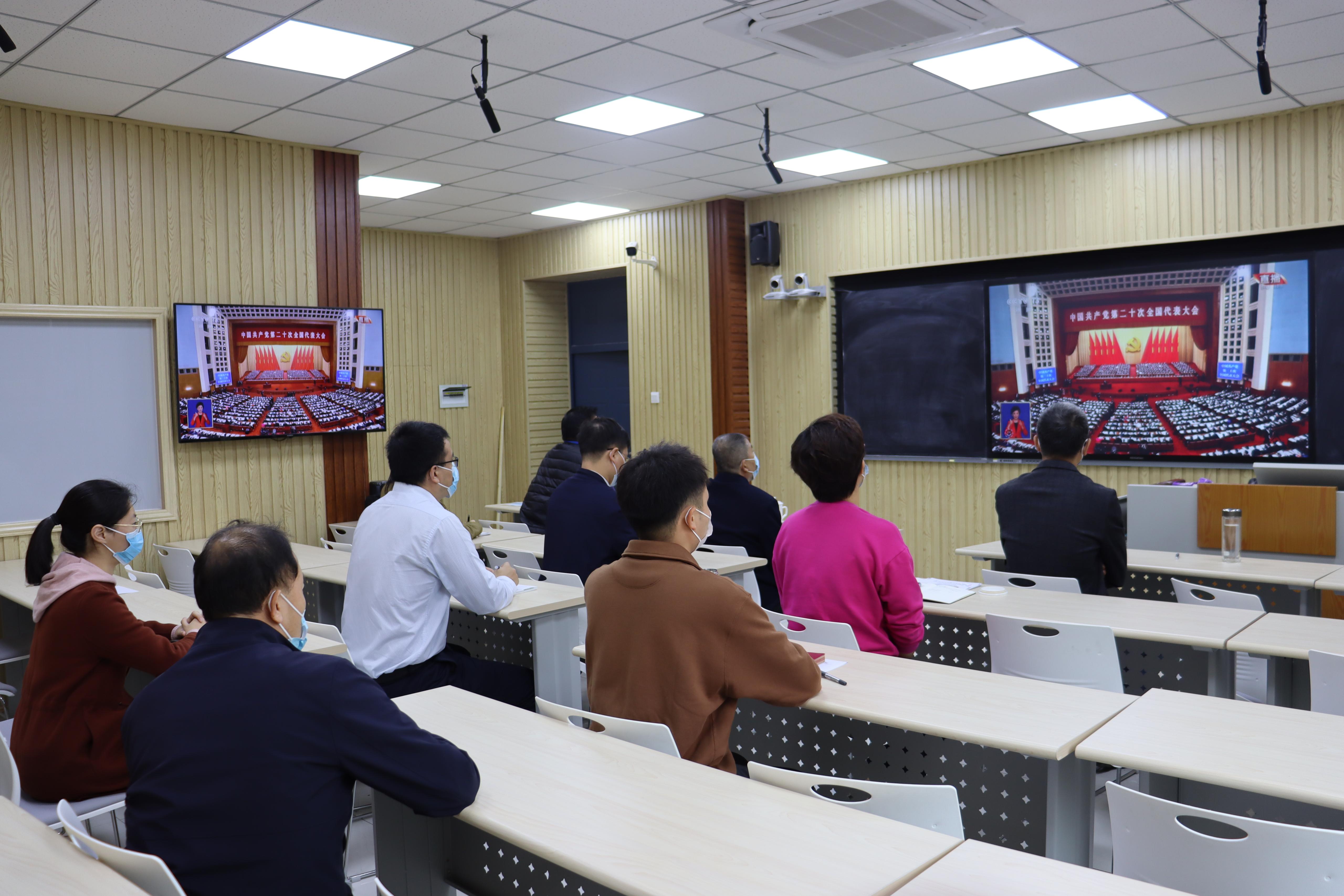 在学院智慧教室,英国365集团官网党委理论学习中心组、全体行政人员集体观看了开幕会直播,与会人员认真听取了习近平总书记代表第十九届中央委员会所作的报告。与此同时,学院组织各党支部、团支部通过视频会议以线上线下相结合、集中学习与分散学习相结合的形式在教研室、教室、宿舍等进行学习。