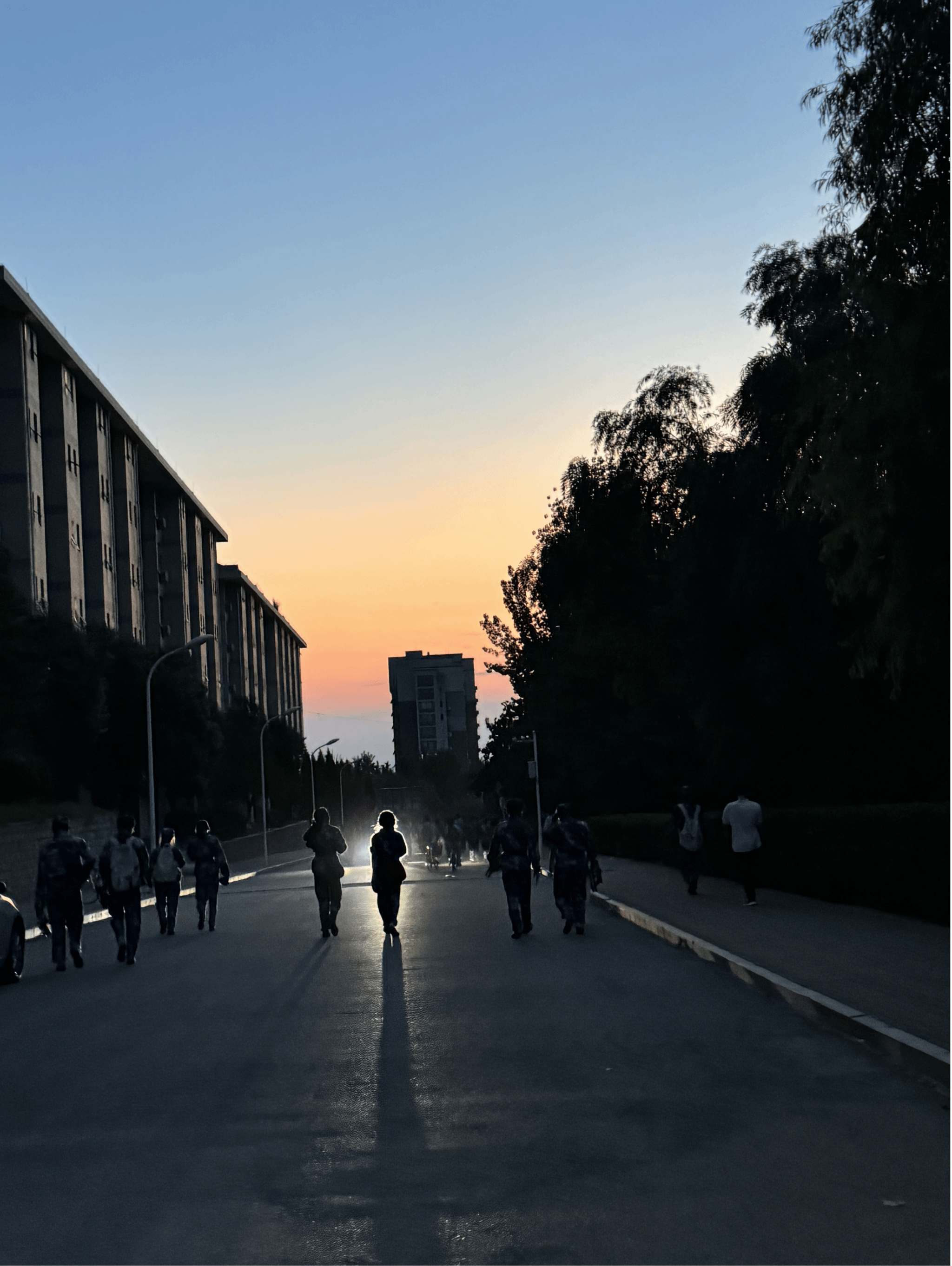 走在济南大学的清晨,夜色还未完全褪去睡意,校园里已经满是匆匆的行人。渐渐地,太阳从东方升起,天空的朝霞映衬出校园里一位又一位行人的身影,从星星点点到成群结队。这时候,济南大学的校园各处充盈着学生们的欢声笑语,青春的活力与年少的美好唤醒济南大学的清晨。