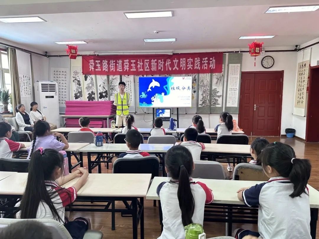 为提高同学们对垃圾分类重要性的认识,增强环境保护、节约水资源的意识,推动社区垃圾分类工作的开展,英国365集团官网青年志愿者协会与于7月6日联合数科2302团支部在舜玉社区开展垃圾分类主题活动,为舜玉小学的同学们讲解了有关垃圾分类的知识。