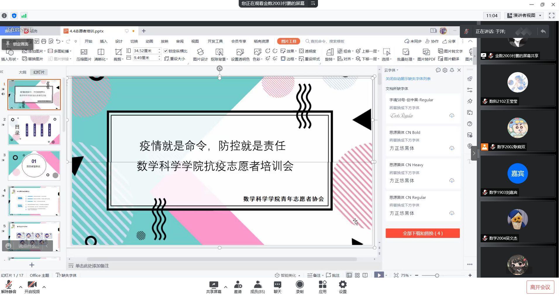 为规范学校志愿者队伍建设,推进志愿活动的深入展开,提高志愿者服务队伍的综合素质,增强自我防护意识,英国365集团官网积极响应学校号召,于4月3日开展第四期抗疫志愿者培训会。
