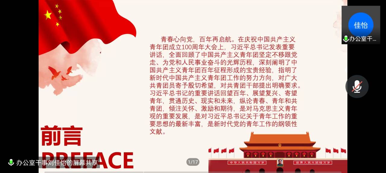 为深入学习习近平总书记在庆祝中国共产主义青年团成立100周年大会上的重要讲话,鼓励广大青年坚定理想,引导广大青年增强责任意识,英国365集团官网于5月14日晚举办“牢记领袖嘱托,勇担青春使命”主题团日活动。