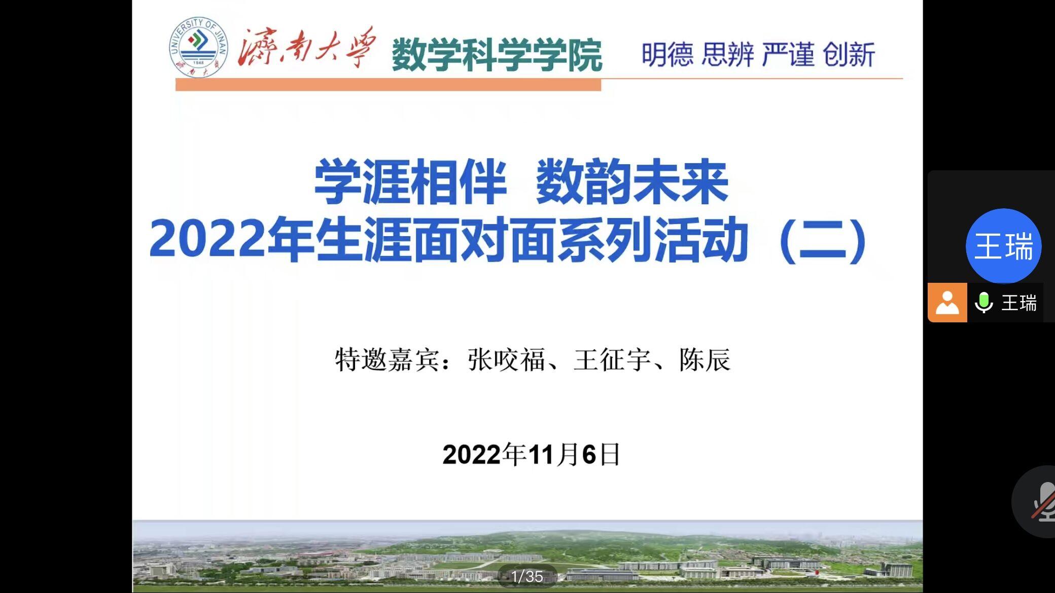 为帮助大一新生更快地适应大学生活,对学业有清晰的认识和具体的规划,英国365集团官网于11月6日晚七点举办线上学业规划讲座。张咬福、王征宇、陈辰三位济南大学优秀毕业生受邀,为同学们进行学业规划讲座,全体2022级新生参加活动。