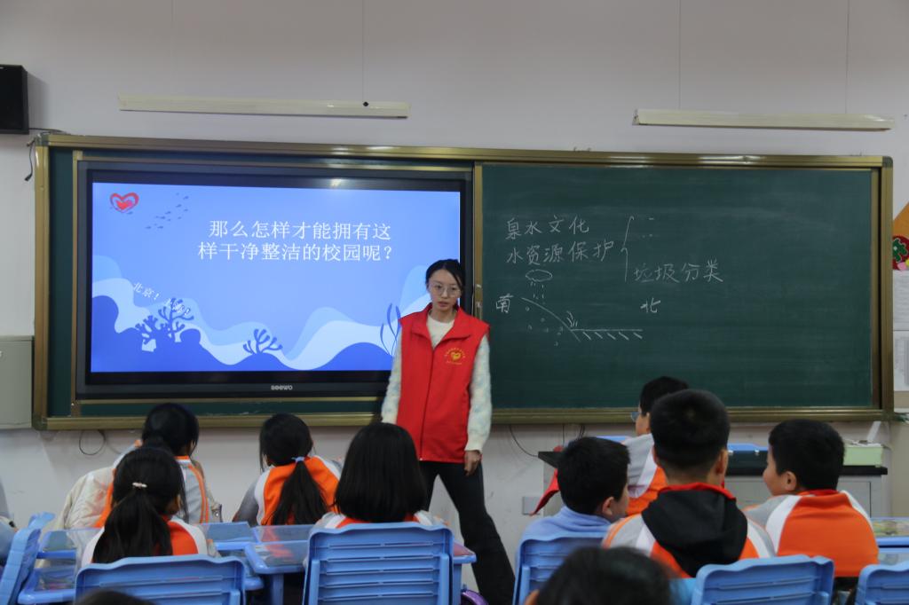 此次延时课堂,由获得第六届中国青年志愿服务项目大赛铜奖的项目“清泉之行——水资源保护志愿服务宣教项目”负责,项目成员曾多次前往济南市多所学校进行授课,普及“节水护水”知识。志愿者们通过主题宣讲、PPT展示、寓意动画、发放图册、互动游戏等形式,围绕济南泉水概况、什么是泉水净化等向小学生们生动形象地介绍了水环境保护和泉水保护小知识,倡导小学生们珍惜水资源,保护水环境,建设幸福泉水之城。