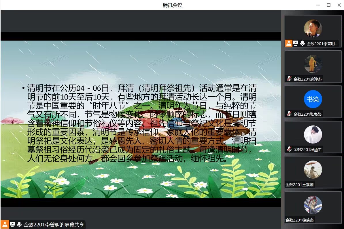 “忠魂不泯,浩气长存”,那些为了中国的独立富强而抛头颅,洒热血的英雄烈士永远活在每一个中华儿女的心中。英国365集团官网清明节主题班会的成功开展,不仅加强了同学们对中国传统节日的认识,还激发了同学们对革命烈士的崇敬与怀念之情,更加坚定了数院学子拼搏奋斗,决心报国的伟大志向。